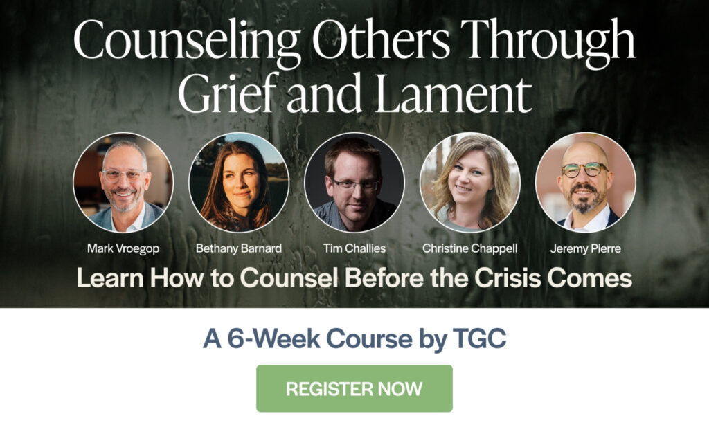 This cohort seeks to empower ministry leaders, counselors, and friends in how to effectively walk along-side grieving people with tenderness and hope. Over six sessions we’ll explore a biblical theology of sorrow while learning how to use lament as a helpful prayer language and counseling tool for processing grief. We’ll not only learn what lament is, but also how it can be practically used to lead people through their sorrow. What’s more, we’ll also consider the implications of unique scenarios and contexts of grief. Featuring live teaching sessions by Mark Vroegop, Bethany Bernard, Tim Challies, Christine Chappell, and Jeremy Pierre. Runs April 15th through May 20th, 2026.